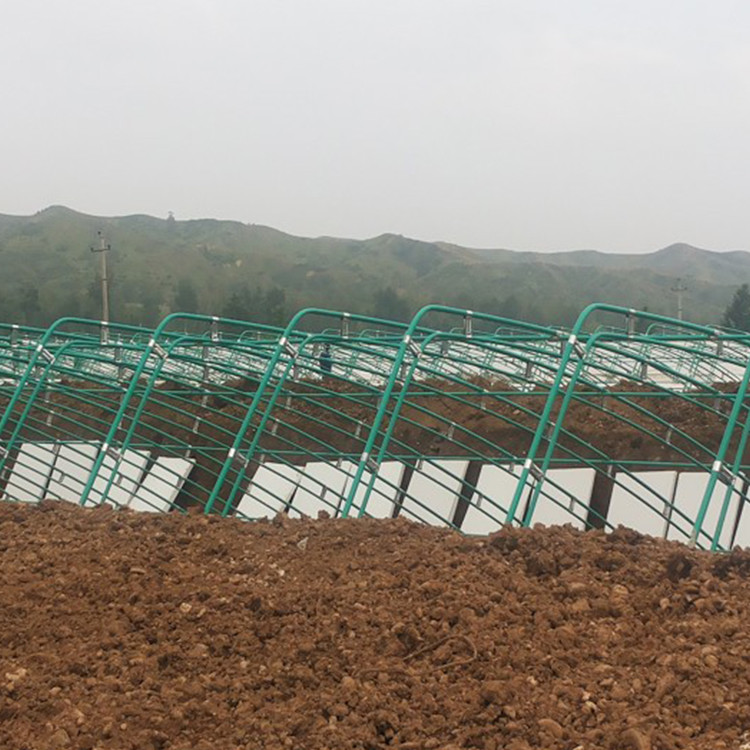 一種新型防水大棚支架包括密封管、端蓋和填充料,密封管內(nèi)裝滿填充料,該密封管的兩端用端蓋密封。所述的密封管和端蓋采用PVC或其他塑料制成,填充料采用玻璃纖維和氯氧鎂水泥。本實用新型的優(yōu)點是:成本低,防水防潮,韌性好、不變形,避免了氯鎂水泥的反鹵,防止氯鎂水泥與水的接觸,使用壽命長,其密封管可以加工成任何需要的形狀,向管內(nèi)填充氯鎂水泥即可完成生產(chǎn),不需要模具,大大簡化了生產(chǎn)工藝。