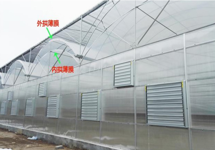 此種溫室大棚的走向?yàn)槟媳弊呦?,也可以說(shuō)是單體拱棚的加強(qiáng)版。此種溫室頂部可以加棉被,同時(shí)兩側(cè)跨度可以做到十二米甚至更多。此種溫室的優(yōu)點(diǎn)是土地利用率高,可以安裝自動(dòng)化的現(xiàn)代農(nóng)業(yè)設(shè)備。但是北方溫度低于零下十度的地區(qū),想要越冬生產(chǎn)還是要供暖。